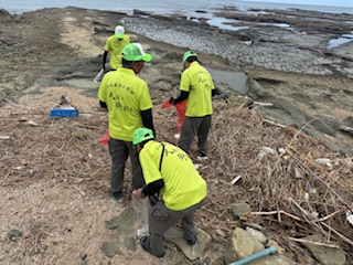 NPO法人遠賀川流域住民の会主催の『芦屋・若松海岸クリーンキャンペーン』に従業員の家族・お子さんも一緒に参加しました。今年も天気は雨でしたが、張りきって取り組みました。